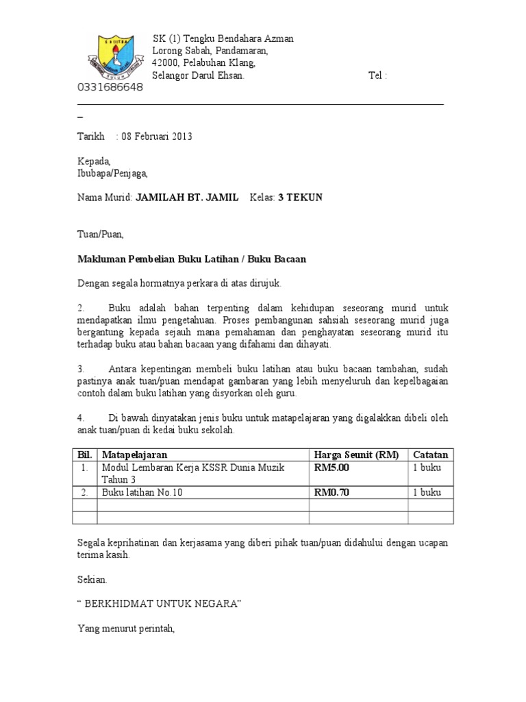 Surat Makluman Pembelian Buku Pdf